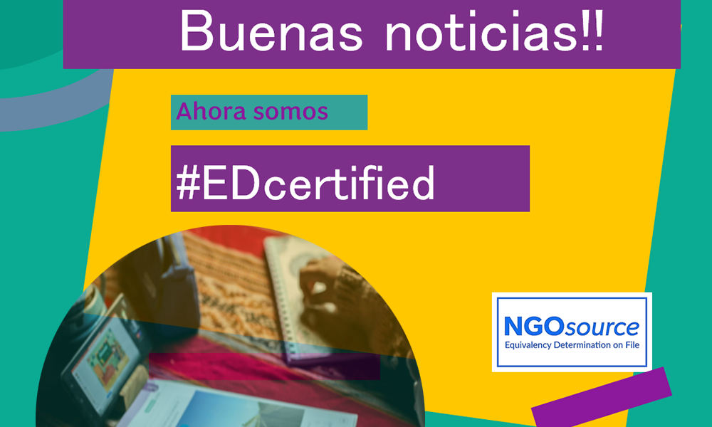 We are thrilled to have received our #EDcertified status through NGO Source! Our organization´s #EquivalencyDetermination certificate is now on file in the NGOsource repository for US-based Grantmakers to request and access. This can make it easier for companies and funders to collaborate with our organization. This certification guarantees that our administrative, operational, and financial processes are equivalent to US organizations.